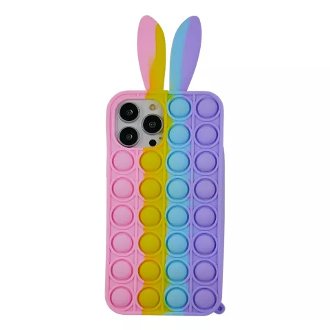 Bunny Pop Fidget Bubble Silikonhülle Kompatibel mit iPhone 14 Pro Max - Pink, Gelb, Blau und Lila