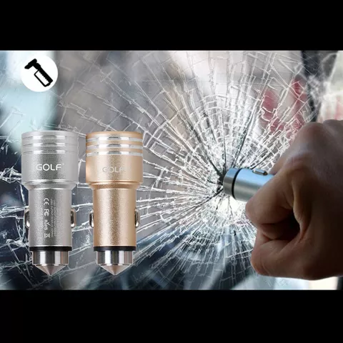 Duales USB-Autoladegerät und Sicherheitshammer aus Metall. Autostecker-Adapter. Autoladegerät