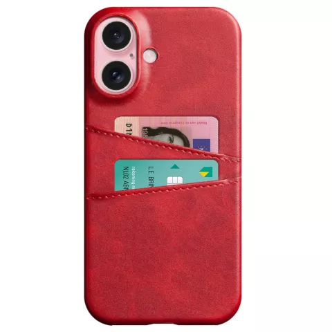 Duo Cardslot Wallet vegane Lederhülle Kompatibel mit iPhone 16 - rot