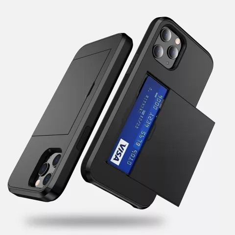 Geheimkartenhalter aus rutschfestem Kunststoff und TPU, Kompatibel mit iPhone 15 Plus - Schwarz