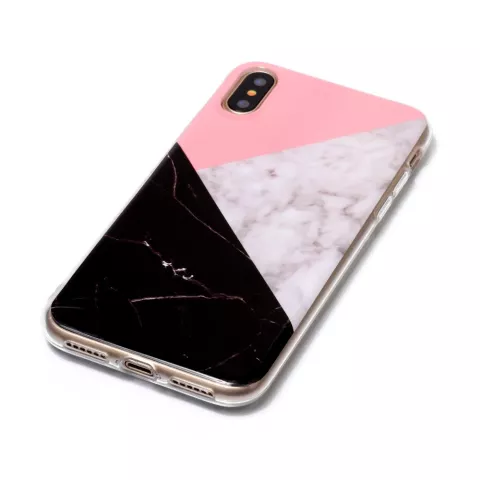 Marmorhülle mit geometrischen Oberflächen, Kompatibel mit iPhone X XS - Rosa, Weiss, Schwarz