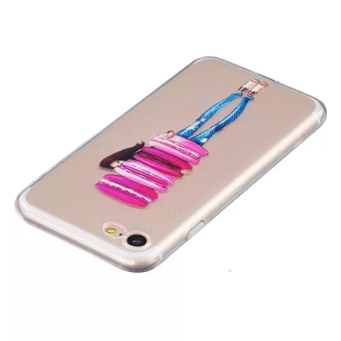 Transparente Macaron-Hülle Kompatibel mit iPhone 7 8 SE 2020 SE 2022 Rosa Kekse mit Mädchen TPU-Hülle