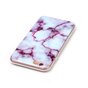 • Die Rückseite dieser Hülle hat einen grau-weißen Marmordruck mit violetten Rissen. Die Kanten dieser Hülle sind transparent.
