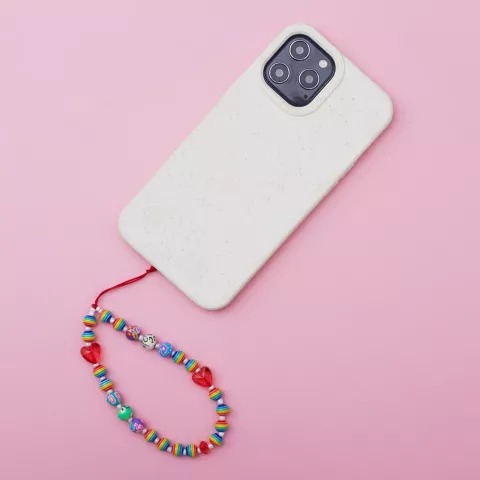 • Ein modisches Armband mit regenbogenfarbenen Perlen für Ihr Telefon.