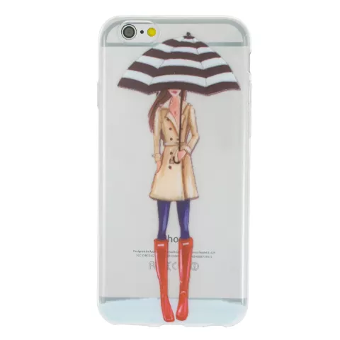 Regenschirm-Mädchen-TPU-Hülle Kompatibel mit iPhone 6 6s - Red Boots Trenchcoat - Transparent
