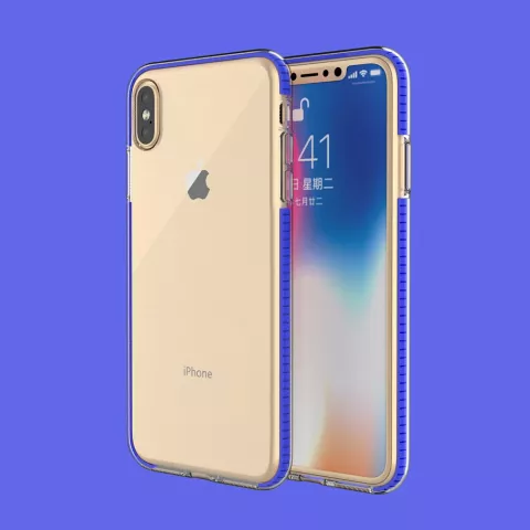 • Dies ist die Hülle mit einem schützenden blauen Rand, die für das iPhone XS Max geeignet ist. Die TPU-Hülle ist transparent, sodass sie das Design des iPhones nicht beeinträchtigt.