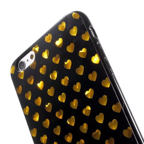 Schwarzgoldene Herzhülle Kompatibel mit iPhone 6 6s Cover