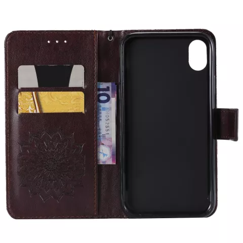 Leder-Brieftaschen-Bücherregal mit Sonnenblumenmuster, Kompatibel mit iPhone XR-Hülle - brauner Standard