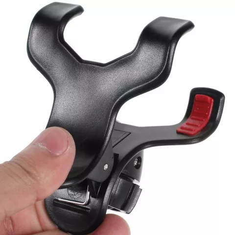 • Die Klemme hat eine maximale Reichweite von 90 mm, sodass alle Smartphones passen, auch die Max- und Plus-Versionen.