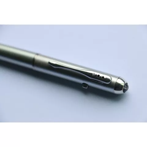 • Ein scheinbar normaler Stift, das ist es nicht. Dieser Stift kann mit unsichtbarer Tinte schreiben, Sie können diese Tinte jedoch nur mit diesem Stift wieder sichtbar machen. An der Kappenseite des Stifts befindet sich ein Licht, das die Tinte mithilfe von UV-Strahlen wieder sichtbar macht. Dies geschieht nur, wenn Sie den Stift erneut darauf richten.