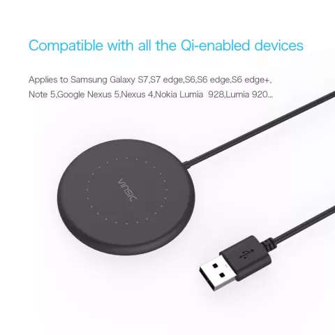 Vinsic Qi Universelles kabelloses schwarzes Ladepad-Ladegerät