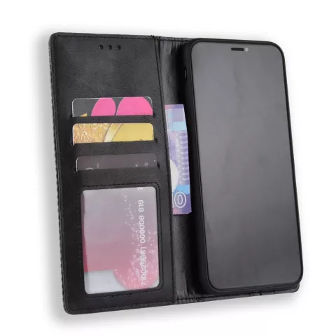 Schutzhülle aus Kunstleder im Vintage-Geldbörsen-Stil, Kompatibel mit iPhone XS Max Hülle - Schwarz