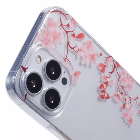 • Die Hülle hat eine transparente Farbe und einen Aufdruck aus anmutigen rosa blühenden Blumen und Schmetterlingen, der Ihrem iPhone ein wunderschönes Aussehen verleiht. Da die Hülle transparent ist, beeinträchtigt dies nicht das schöne Design Ihres Geräts und Sie können durch die Hülle immer noch die Originalfarbe des Geräts sehen.