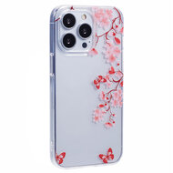 • Die Hülle hat eine transparente Farbe und einen Aufdruck aus anmutigen rosa blühenden Blumen und Schmetterlingen, der Ihrem iPhone ein wunderschönes Aussehen verleiht. Da die Hülle transparent ist, beeinträchtigt dies nicht das schöne Design Ihres Geräts und Sie können durch die Hülle immer noch die Originalfarbe des Geräts sehen.