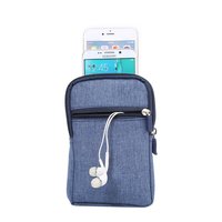 Universelle Handytasche, Brieftasche, Denim, 3 Fächer, Survival-Sporttasche - blauer Karabiner